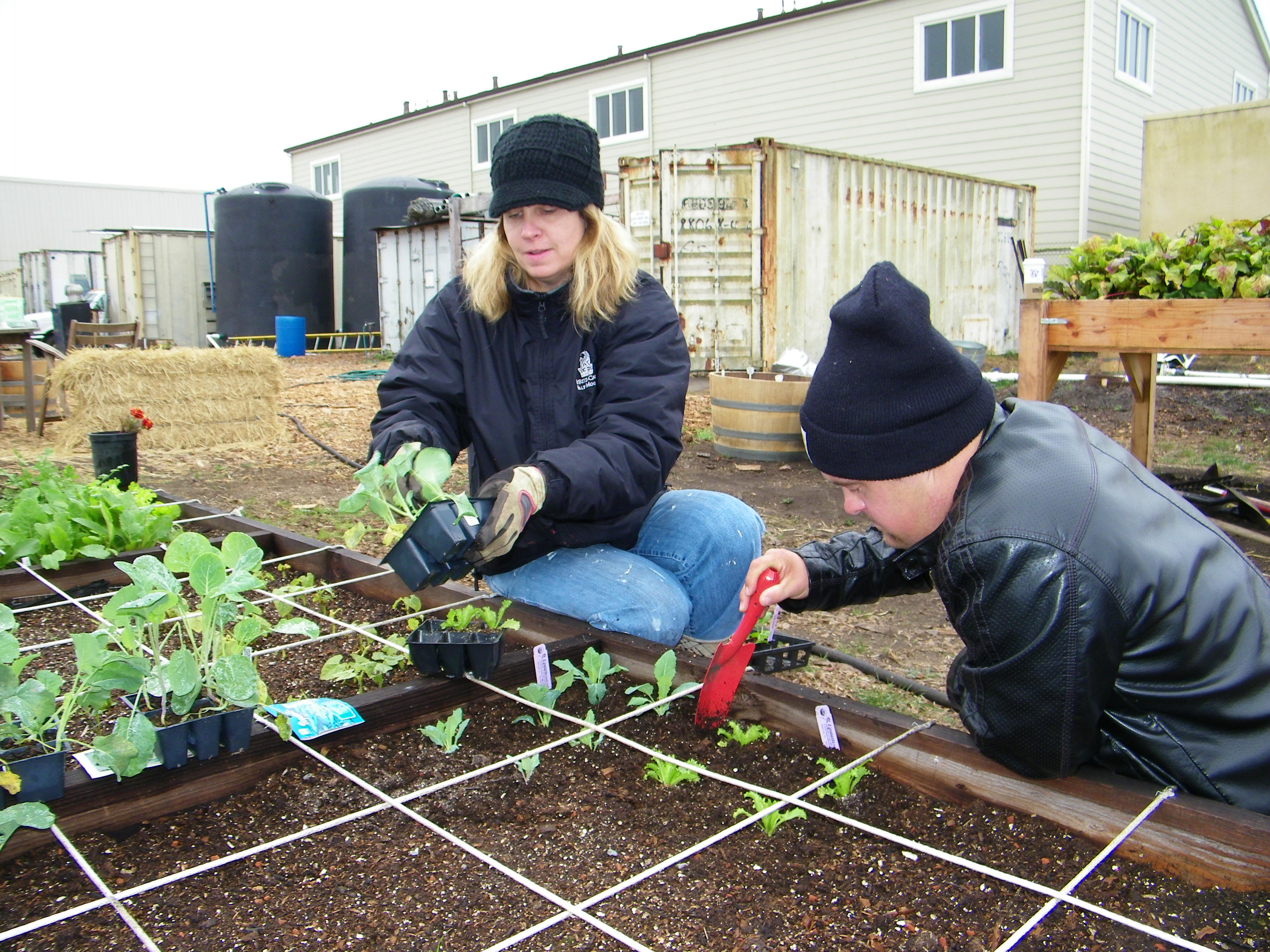 Patrick and Kathy are planting lettuce |
