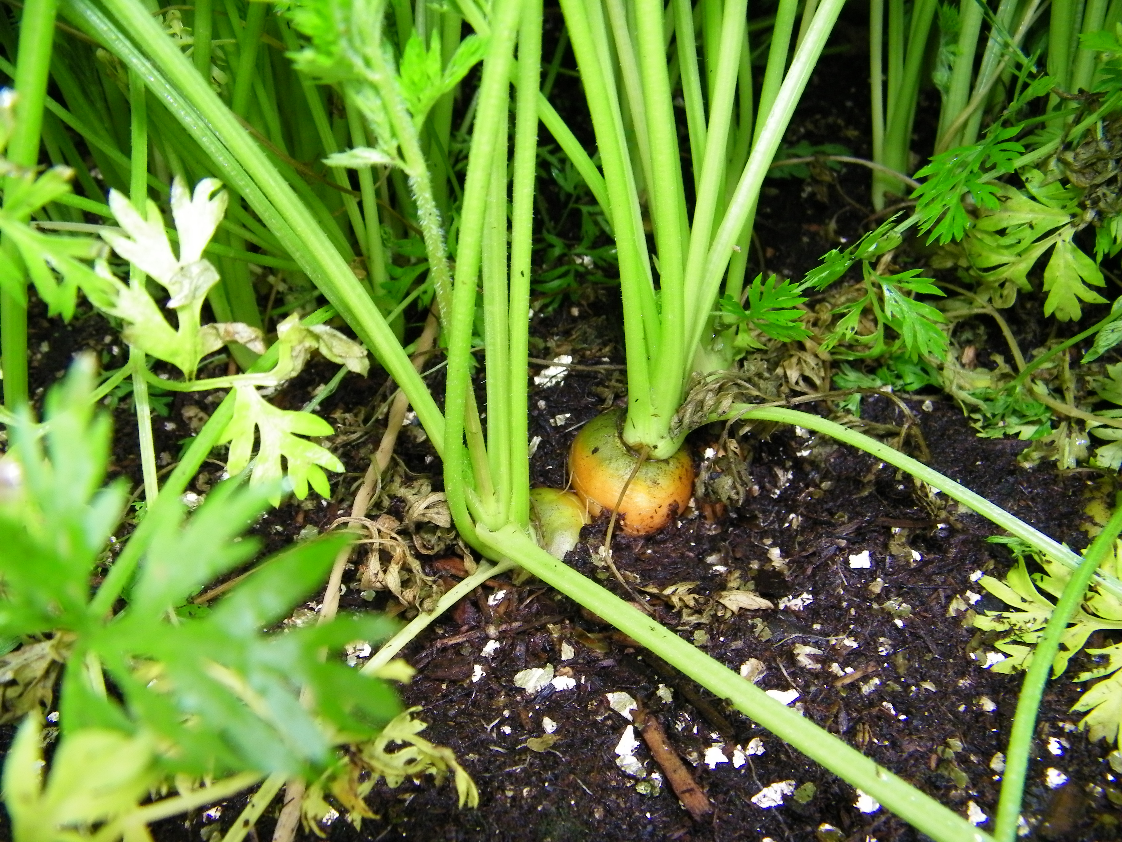 The carrots are growing, but not ready yet. |